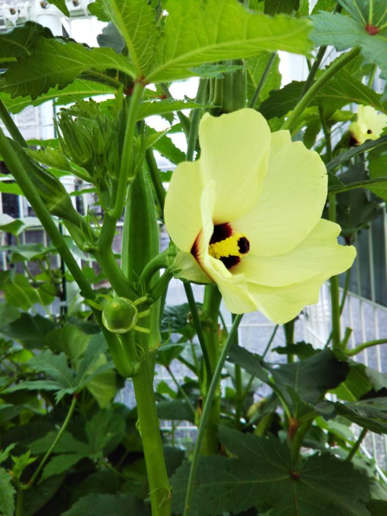 おくらの花が咲いていました!夏のお野菜、おくら。花が咲くのを初めて知りました。